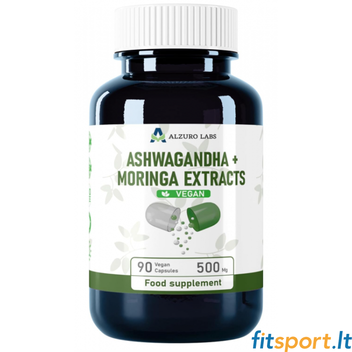 Alzuro Labs Ašvaganda (20:1 ekstrakts) + Moringa (10:1 ekstrakts) 90 kapsulas.