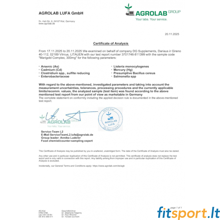 • Izstrādāts ar samteņu (Tagetes erecta) ekstraktu attiecībā 50:1 , standartizēts līdz 10% luteīna, 3% zeaksantīna un 3% mezo-zeaksantīna – spēcīgiem karotinoīdiem, kas veicina acu veselību.