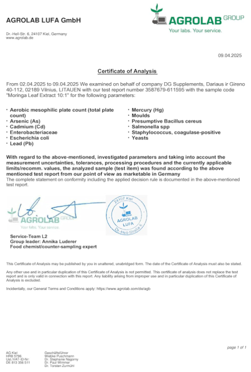 - Augsti koncentrēts moringas (Moringa oleifera) lapu ekstrakts