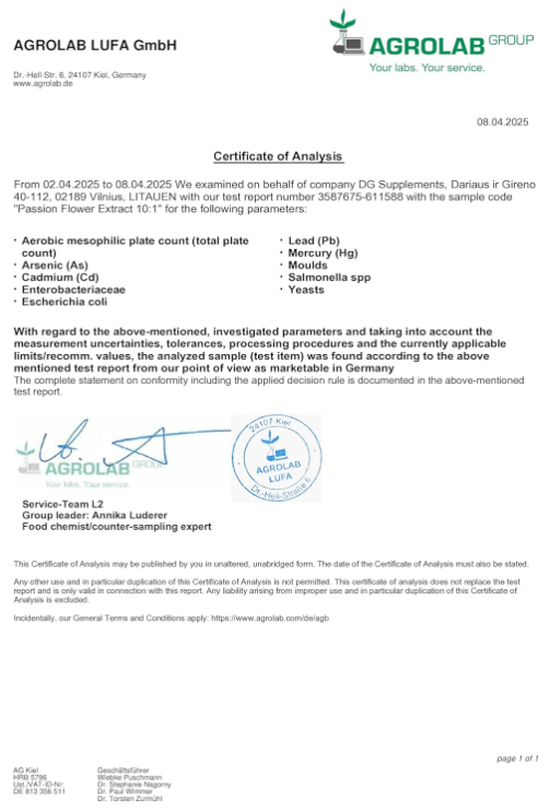 - Augsti koncentrēts pasifloras (Passiflora incarnata) ekstrakts