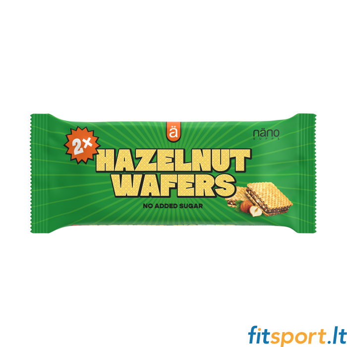 Nano Supps Hazelnut Wafers – vafliai su lazdyno riešutų skonio įdaru, su saldikliais.
